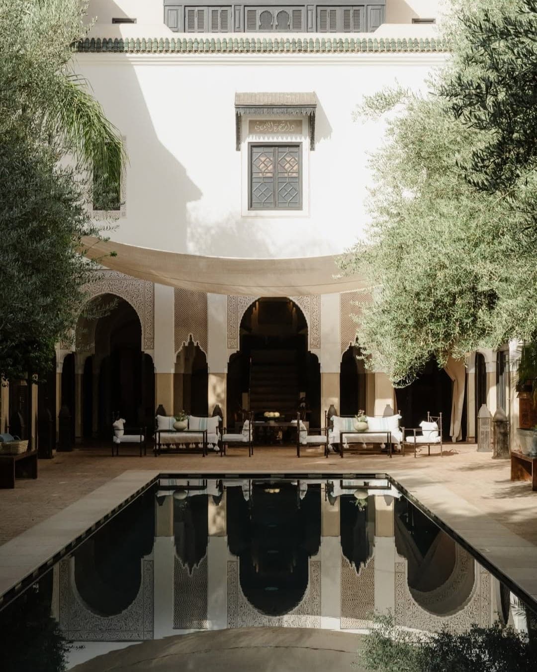 May is when pool culture begins in Marrakech, and it begins as a genuine social phenomenon rather than a mere amenity. The city's major hotels, its boutique riads, and its day-pass properties all shift gear simultaneously, and the pool becomes the axis around which a certain kind of Marrakech day organizes itself: medina in the morning, water in the afternoon, rooftop at sunset.
