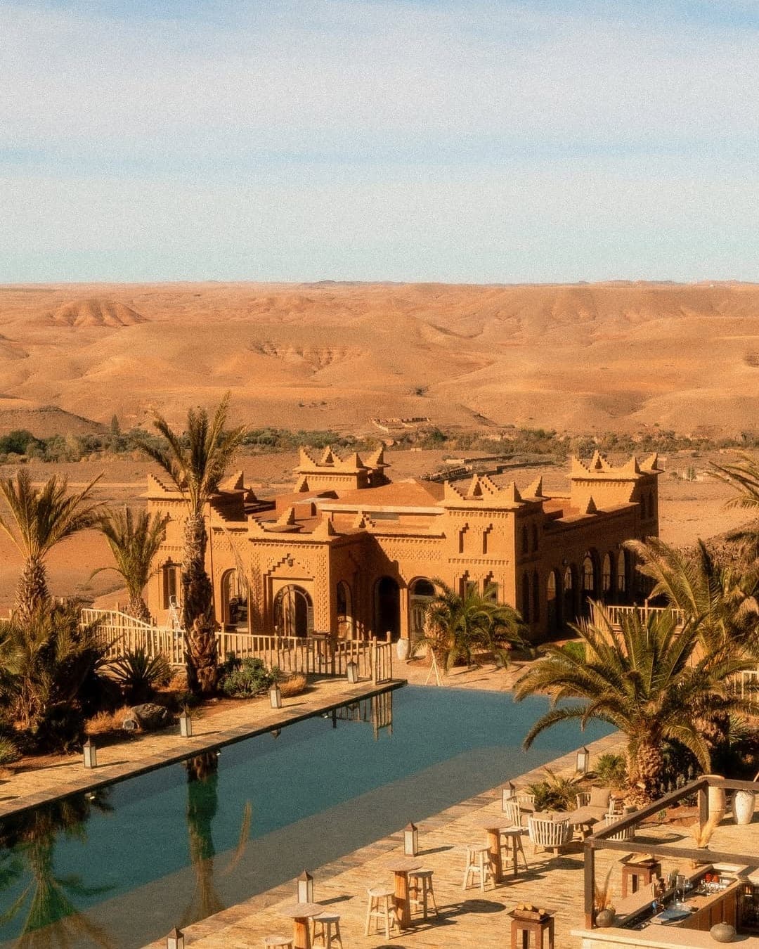 Agafay, the rocky desert plateau southwest of the city, produces a particular quality of golden light in spring evenings that photographs cannot quite capture. It is best experienced from one of the camp properties at dusk, dinner under a sky that deepens slowly from orange to dark. Essaouira on the Atlantic coast is an easy escape: ocean air, 22 to 24 degrees, a city that moves at a different pace entirely. Three hours in either direction, the contrast between the Atlas landscape and the ocean confirms a quality of Morocco that the country's reputation understates: the proximity of genuinely different worlds within a single day's travel.